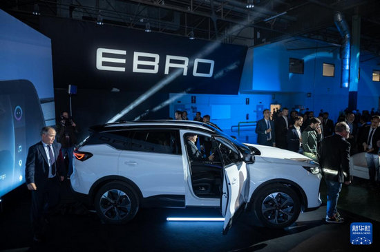 11月23日,在西班牙巴塞羅那自由貿(mào)易區(qū),嘉賓體驗(yàn)中國(guó)汽車制造商奇瑞與西班牙埃布羅公司合資工廠的首款車型。 新華社發(fā)(胡安·戈薩攝)