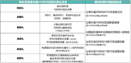 風云A8L共推出5款車型,1.5L-DHT 70KM標準型10.99萬元、1.5L-DHT 70KM舒適型11.99萬元、1.5TGDI-DHT 145KM標準型12.99萬元、1.5TGDI-DHT145KM舒適型13.99萬元、1.5TGDI-DHT 145KM豪華型14.99萬元,并帶來購車至高享價值41000元的驚喜6重禮遇,奇瑞置換補貼價低至9.49萬元起(不含國補)。