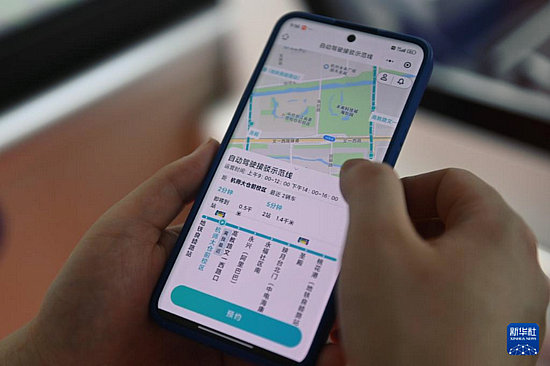 5月22日,市民通過手機(jī)預(yù)約體驗(yàn)自動駕駛接駁示范線。