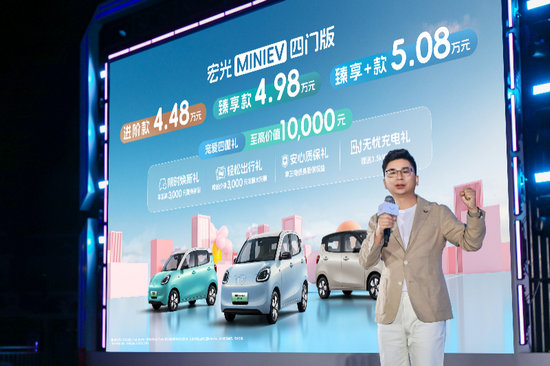 2月22日晚,宏光MINIEV四門版正式上市,共推出進階款、臻享款、臻享+款三種配置車型,售價區(qū)間為4.48萬-5.08萬元。
