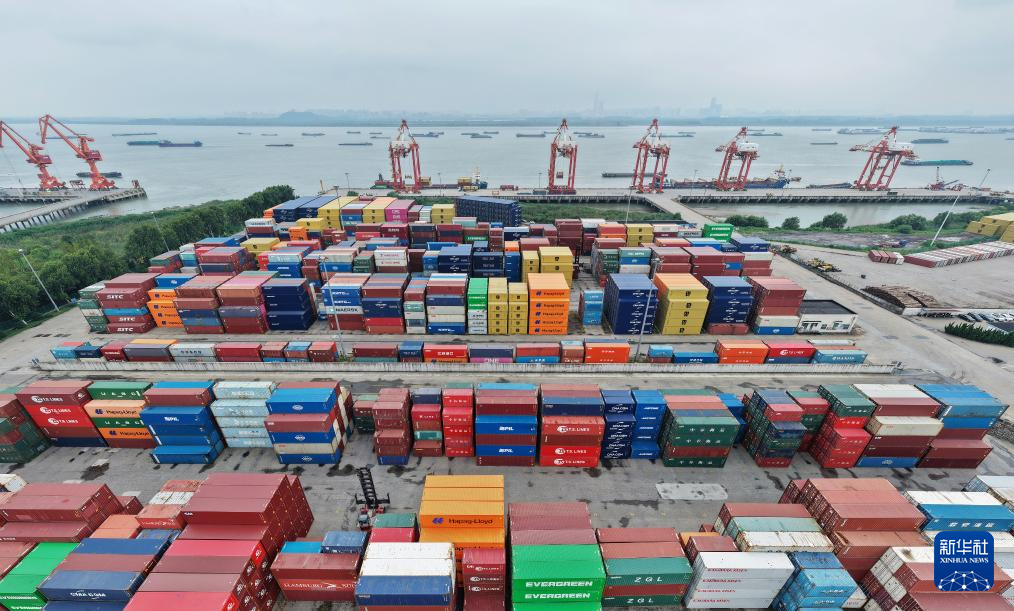 9月8日拍攝的江蘇省揚州港集裝箱堆場(無人機(jī)照片)。