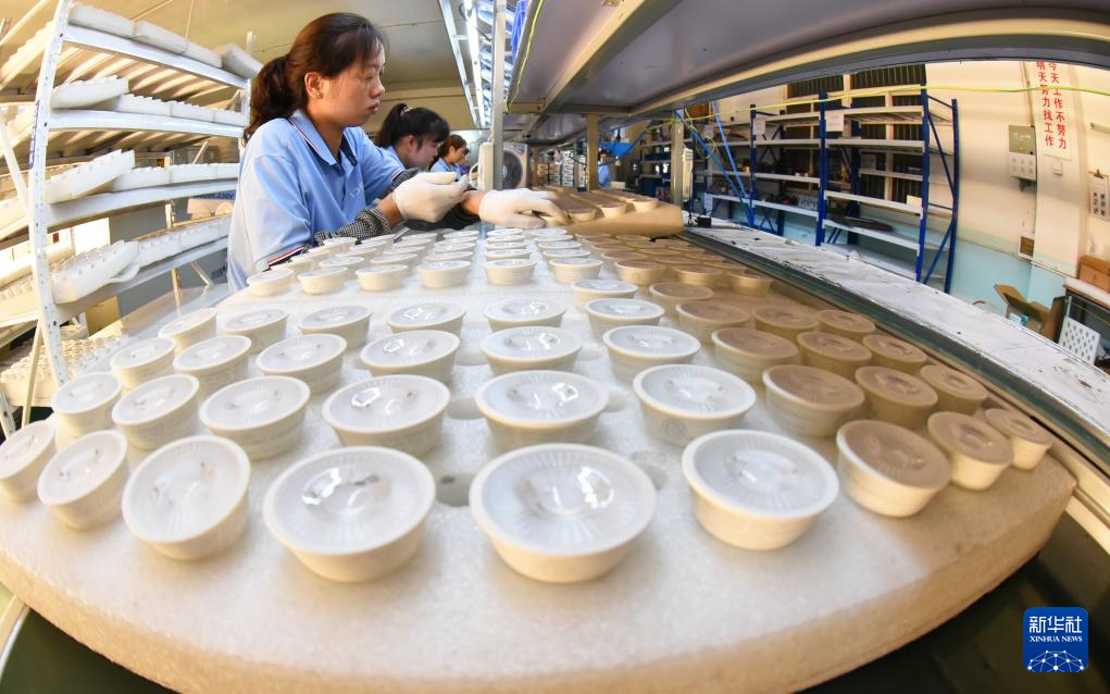 9月8日,在江蘇省連云港市海州區(qū)錦屏工業(yè)園一家外貿(mào)企業(yè),工人在生產(chǎn)線上趕制一批LED照明燈具海外訂單。