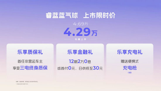 同時,睿藍藍氣球在上市之際也推出多重驚喜好禮,涵蓋首任非營運車主享受三電終身質(zhì)保、12期2萬0息或首付0元,日供低至30元金融禮、贈送1把便攜式充電槍,進一步減輕用戶擁車壓力。即日起,消費者可通過睿藍汽車官方APP、小程序或授權(quán)經(jīng)銷商渠道了解詳情、預(yù)約試駕,并可享首批車主專屬禮遇。