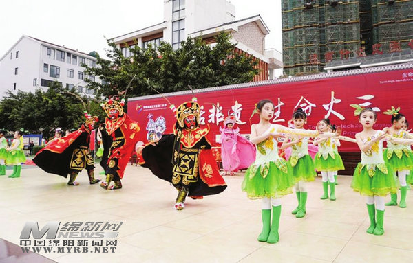 近日,在高新區(qū)火炬第三小學(xué)(以下簡(jiǎn)稱火炬三小)的操場(chǎng)舞臺(tái)上,市教體局正對(duì)該校“非遺”系列工作坊創(chuàng)建“綿陽(yáng)市優(yōu)秀學(xué)生藝術(shù)社團(tuán)”進(jìn)行現(xiàn)場(chǎng)復(fù)核評(píng)估,由該校戲劇社團(tuán)學(xué)生演出的《桃花村》《薪火相傳》《變臉》等節(jié)目正在接受審評(píng)。孩子們?cè)谂_(tái)上有模有樣的一念一唱,一舉一動(dòng)贏得了操場(chǎng)內(nèi)外過(guò)往市民的陣陣喝彩聲、掌聲。