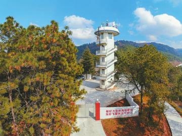 1月14日,西昌市紅星林場(chǎng)的工作人員在森林瞭望塔值守。