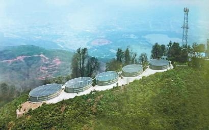 2020年12月24日,鳥(niǎo)瞰西昌市區(qū)周邊山林中新建的蓄水池組。