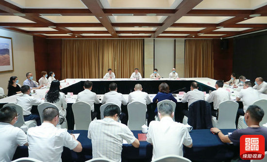 市領導張學民、經大忠,黨代會報告起草組參加座談會。(綿陽日報社融媒體記者 安達福/文 賴杰/圖)