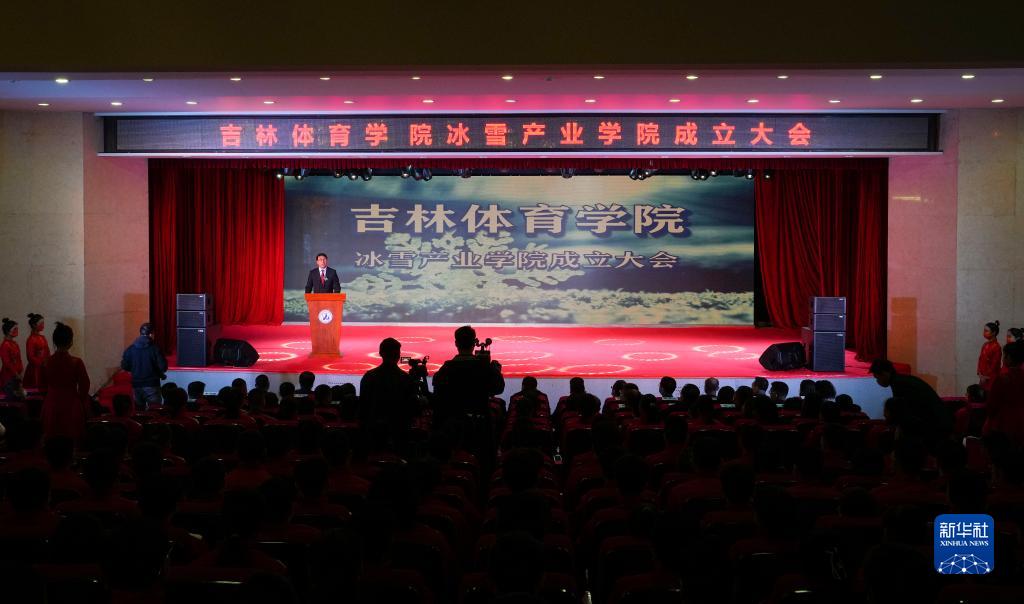 這是10月25日拍攝的吉林體育學(xué)院冰雪產(chǎn)業(yè)學(xué)院成立大會現(xiàn)場。