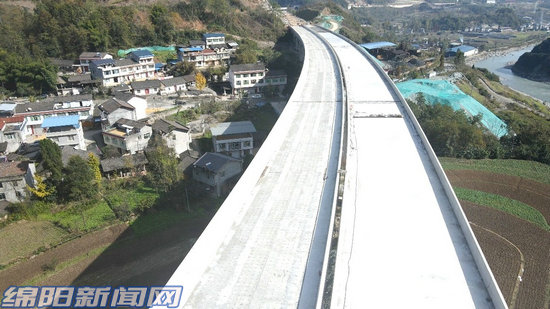 廣平高速涪江特大橋左幅合龍(視覺綿陽 鐘小明 攝)