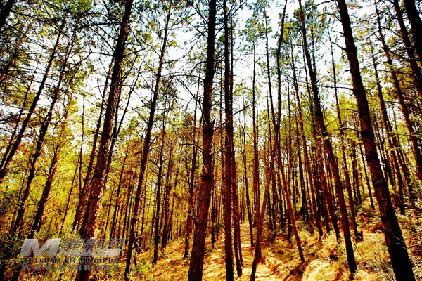 站在佛寨山山頂最高處,舉目四望,可以看到郁郁蔥蔥的山林,向西邊遠(yuǎn)眺,龍門山脈盡收眼底。間或有少許游人來到這里,穿行在馬尾松林中,風(fēng)吹起時(shí),聽林間的松濤陣陣,伴隨著松樹特有的清香,享受著大自然的樂趣。