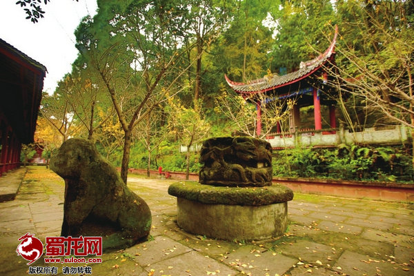 琴泉寺右側(cè)的蟠龍園有許多古跡,其中最值得一提的有石柱盤龍、趙碑、顏碑。“石柱盤龍鎮(zhèn)梓州,鳳凰展翅蓋牛頭,三臺山上七星現(xiàn),馬躍巖前觀魚游。”這是后人對三臺重要景觀的概括,其中,古梓州城七大景觀之首“石柱盤龍”就在蟠龍園內(nèi)。
