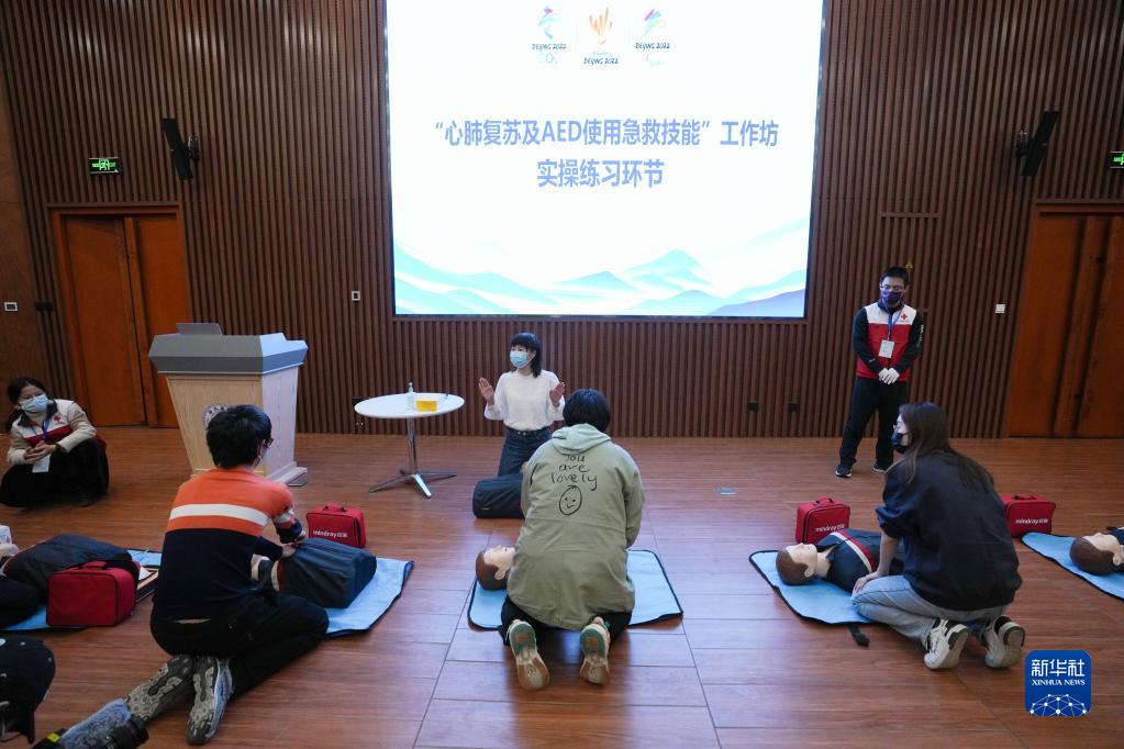 當日,清華大學舉辦面向冬奧學生志愿者的“心肺復蘇及AED使用急救技能”工作坊,由清華大學醫(yī)院醫(yī)生對學生志愿者進行心肺復蘇術(shù)、自動除顫器(AED)使用等基本急救技能的講授與培訓。