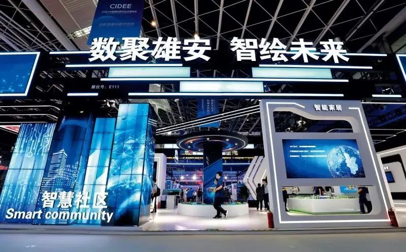 ▲ 2021年9月6日,參觀者在2021中國(guó)國(guó)際數(shù)字經(jīng)濟(jì)博覽會(huì)上參觀“數(shù)聚雄安 智繪未來(lái)”雄安展區(qū) 梁子棟攝/ 本刊