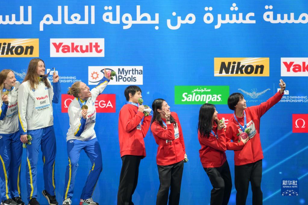 當日,在阿聯(lián)酋阿布扎比舉行的國際泳聯(lián)世界短池游泳錦標賽女子4×100米混合泳接力決賽中,由彭旭瑋、唐錢婷、張雨霏和程玉潔組成的中國隊以3分47秒41打破亞洲紀錄并獲得銅牌。