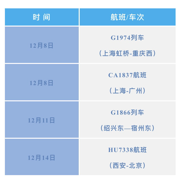 搭乘過以下交通工具的來(返)川人員,第一時(shí)間主動(dòng)向社區(qū)或居(村)委會(huì)、單位或入住酒店報(bào)備旅居史,配合做好相關(guān)防控工作。