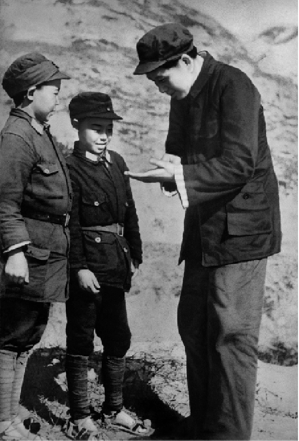 還沒下車,附近跑過來兩個“小八路”,他們身上穿著當(dāng)時最常見的深灰色軍服,這身軍裝在延安人們再熟悉不過,攝影師石少華和幾名蘇聯(lián)記者當(dāng)時也沒多留意,心想說不定是對汽車好奇的小毛孩呢。誰知道,毛澤東剛一下車,兩個“小八路”就迎了上去。毛澤東比他們高大許多,卻俯下身子和他們交談了好一番。