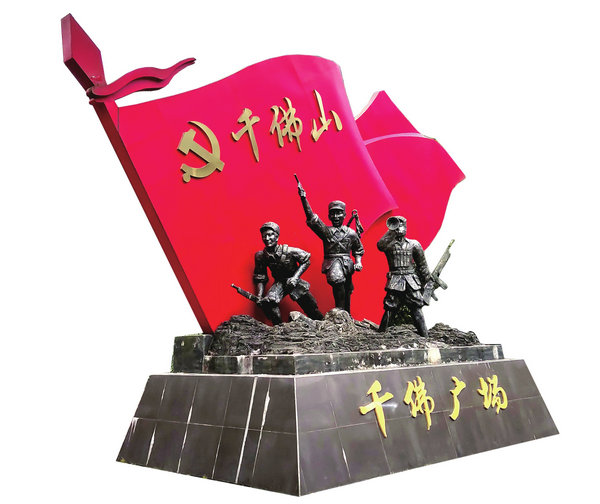 千佛鎮(zhèn)老望溝村紅色走廊上的紅軍雕塑