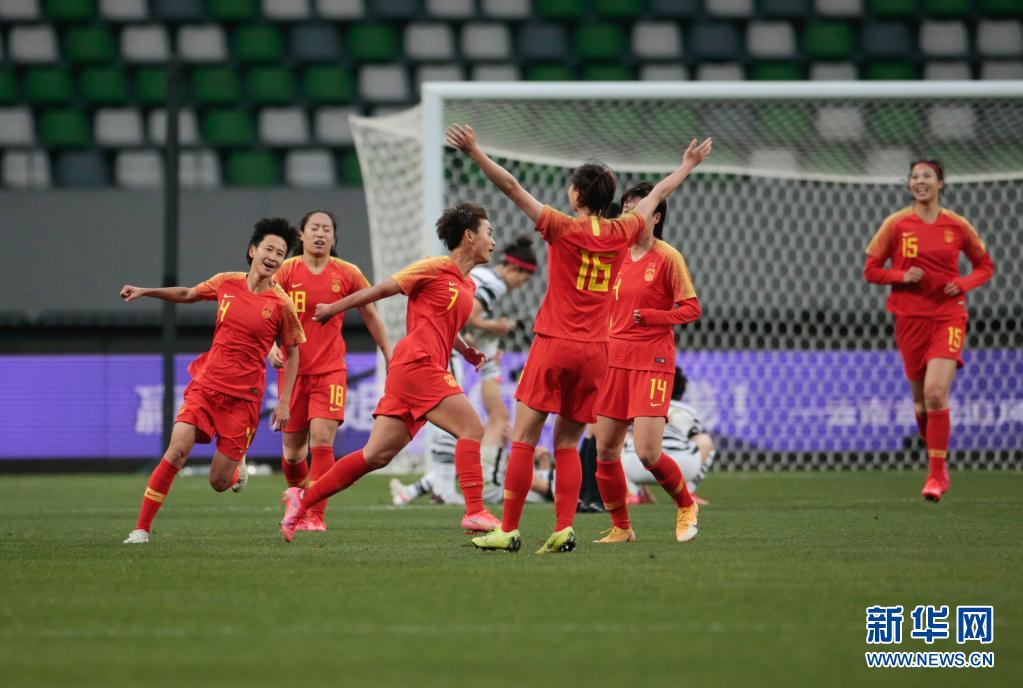 4月13日,中國隊(duì)球員王霜(中)在比賽中慶祝進(jìn)球。