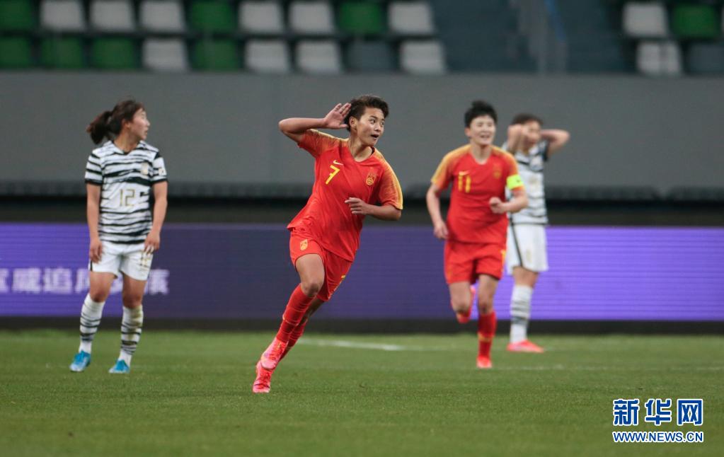 4月13日,中國隊(duì)球員王霜在比賽中慶祝進(jìn)球。