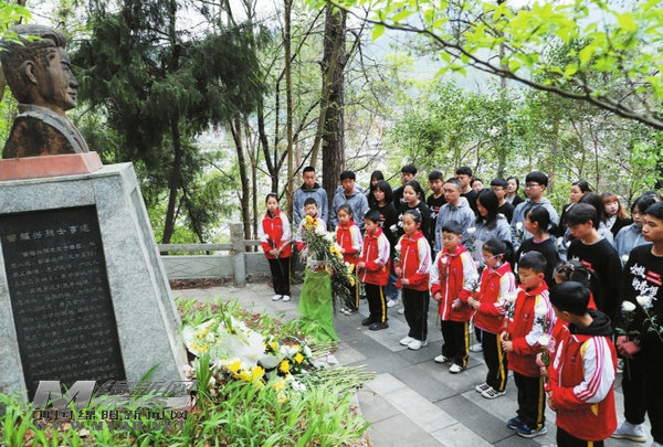 敬獻(xiàn)鮮花緬懷革命先烈(胡宇 攝)
