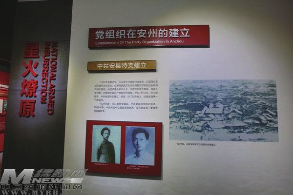 安州區(qū)“革命歷史廳”位于安州區(qū)博物館內(nèi),占地面積500平方米。主要展示了安州早期的革命歷史,介紹了1927年安州建立第一個(gè)黨組織以及土地革命戰(zhàn)爭、抗日戰(zhàn)爭、解放戰(zhàn)爭等各個(gè)時(shí)期涌現(xiàn)出的革命活動(dòng)和英雄事跡。展廳內(nèi)容分為“安州曙光”“星火燎原”“長征贊歌”“抗日烽火”“勝利樂章”等5個(gè)部分,圖文并茂,脈絡(luò)清晰,可讀性極強(qiáng)。