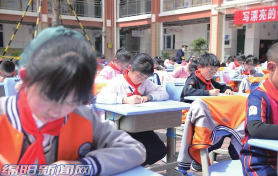 綿陽(yáng)新聞網(wǎng)訊 濃春四月,草木蔓發(fā),繁花生樹(shù),校園可親。在這明媚的日子里,我們寫(xiě)字去。為更好地弘揚(yáng)中華漢語(yǔ)言文化,傳承漢字文化遺產(chǎn),促進(jìn)規(guī)范用字、規(guī)范書(shū)寫(xiě),培養(yǎng)學(xué)生熱愛(ài)祖國(guó)語(yǔ)言文字的情感,提高漢字書(shū)寫(xiě)能力,4月16日下午,玉泉路小學(xué)開(kāi)展了“童心向黨,傳承經(jīng)典”的詩(shī)詞書(shū)法大賽,把對(duì)于黨、對(duì)于祖國(guó)的熱愛(ài)與祝福在撇捺之間盡情揮灑(如圖)。