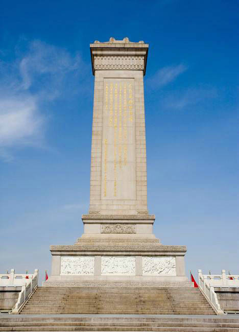 人民英雄紀(jì)念碑碑基占地面積約為3000平方米,碑高37.94米,用17000多塊花崗石和漢白玉砌成。正面(北面)碑心是一整塊花崗巖,長(zhǎng)14.7米、寬2.9米、厚1米、重60.23噸。在這塊最有民族向心力的磐石上,記錄著人民英雄創(chuàng)造的血與火的歷史。從共和國(guó)的締造者,到藝術(shù)家和時(shí)代精英,再到每一位民間藝人和無名石匠,無不傾情而為,給我們留下這樣一座不朽的豐碑。