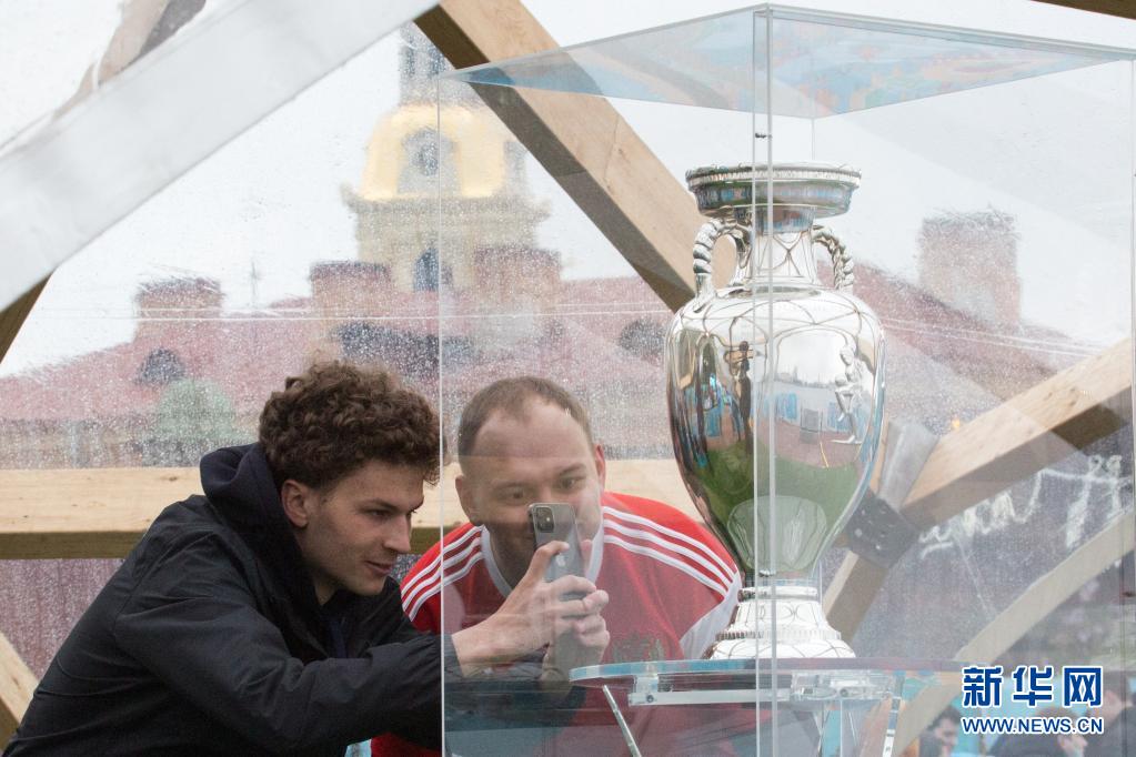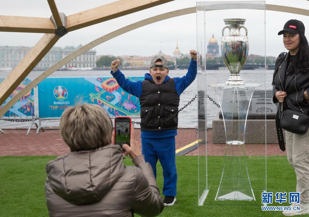 5月23日,球迷在圣彼得堡拍攝展出的德勞內(nèi)杯。