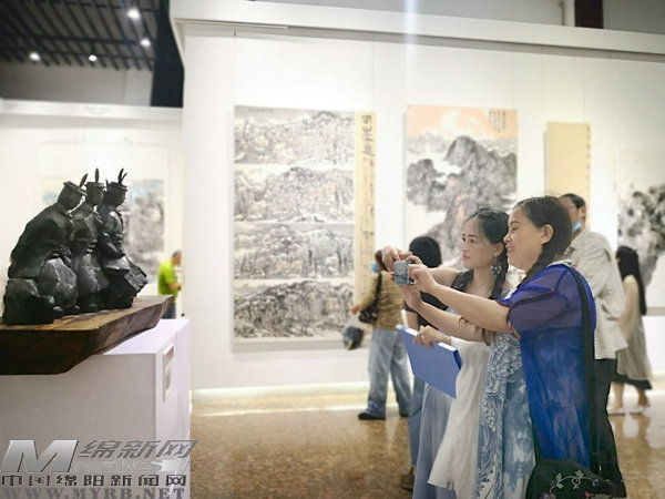 市民參觀綿陽(yáng)市第二屆美術(shù)作品展(綿陽(yáng)日?qǐng)?bào)社融媒體記者張登軍攝)