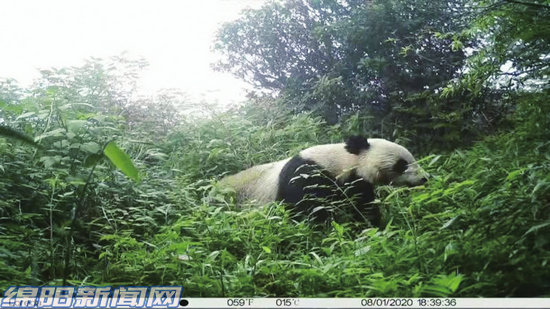 從畫(huà)面中可以看到,一只野生大熊貓?jiān)诹珠g覓食。白天午間時(shí)分,另外一只野生大熊貓又從紅外相機(jī)面前經(jīng)過(guò),短暫停留后鉆進(jìn)了草從里。另一個(gè)點(diǎn)位的紅外相機(jī)也拍到一只野生大熊貓。
