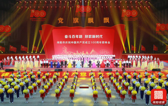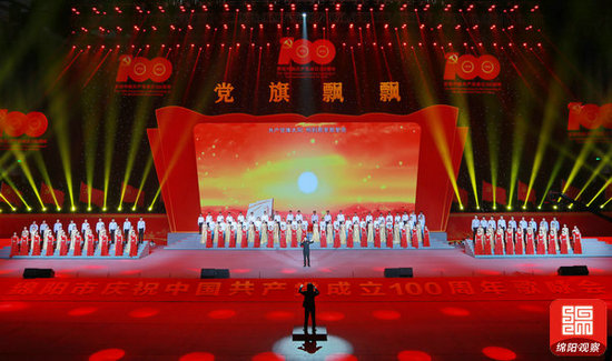 6月30日,綿陽市慶祝中國共產(chǎn)黨成立100周年歌詠會在九洲體育館舉行。(綿陽日報社融媒體記者 賴杰 攝)