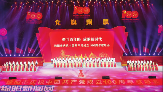 6月30日,以“黨旗飄飄”為主題的“奮斗百年路·放歌新時(shí)代”綿陽市慶祝中國共產(chǎn)黨成立100周年歌詠會(huì)在九洲體育館舉行。歌與舞中,百年畫卷在綿州大地上徐徐展開,從落后到富強(qiáng),從封閉到開放。光與燈中,奮進(jìn)新時(shí)代的足音已經(jīng)響起,凝聚起全面建設(shè)中國科技城和社會(huì)主義現(xiàn)代化綿陽的磅礴力量。