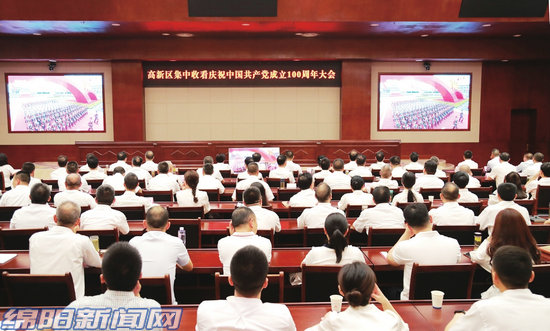 高新區(qū)黨員干部集中收看慶祝中國(guó)共產(chǎn)黨成立100周年大會(huì)直播盛況(圖④)。高新區(qū)公安分局、綿陽(yáng)高新法院、永興鎮(zhèn)、轄區(qū)企業(yè)也組織黨員集中收看。大家表示,高新區(qū)當(dāng)前正加快駛?cè)敫哔|(zhì)量發(fā)展的快車道,面臨“二次創(chuàng)業(yè)”的重大歷史機(jī)遇,站在這歷史交匯點(diǎn),要矢志不渝高擎黨旗,以務(wù)實(shí)作風(fēng)、過(guò)硬本領(lǐng)、昂揚(yáng)斗志,勇挑發(fā)展重?fù)?dān)、勇爭(zhēng)一流業(yè)績(jī),為加快建設(shè)西部一流高科技產(chǎn)業(yè)園區(qū)、全面建設(shè)中國(guó)科技城和社會(huì)主義現(xiàn)代化綿陽(yáng)作出新的更大貢獻(xiàn)。