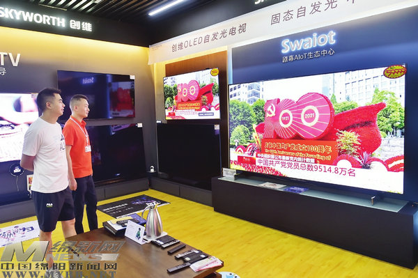 在我市一家商場的電視銷售專柜,市民在駐足觀看慶祝中國共產(chǎn)黨成立100周年大會直播盛況(綿陽日報社融媒體記者王勇攝)