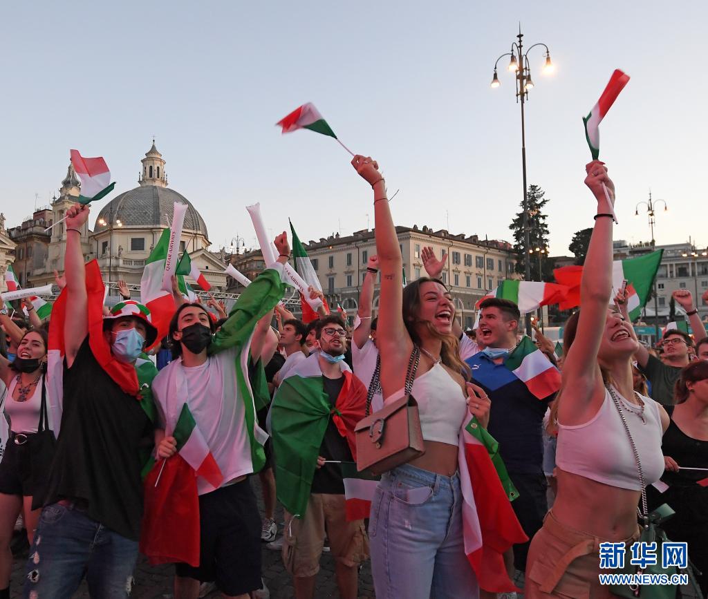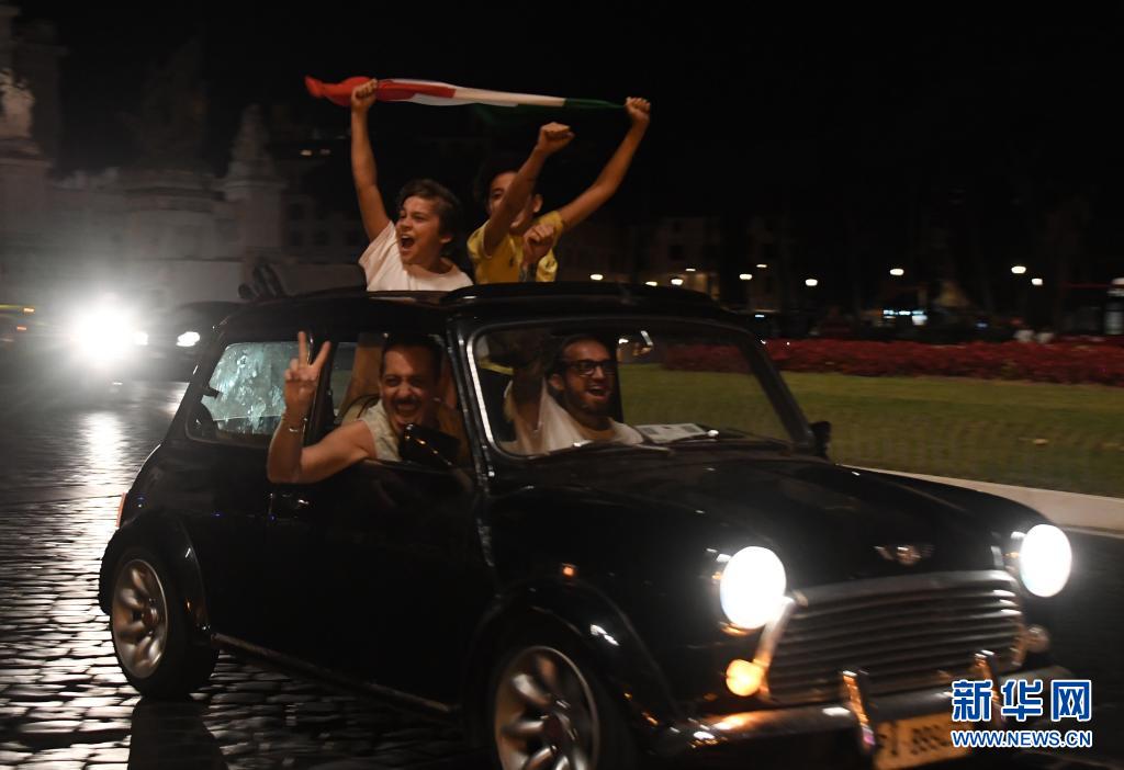 7月6日,意大利球迷在羅馬慶祝意大利隊晉級決賽。