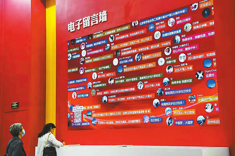 “我愛您,中國(guó)!請(qǐng)您放心,吾輩當(dāng)自強(qiáng)!我為自己是一名中國(guó)人而感到無比自豪!”“奮斗百年路,啟航新征程!我愛我黨,我愛祖國(guó)。”“我們生在紅旗下,長(zhǎng)在春風(fēng)里,人民有信仰,國(guó)家有力量,目光所至皆為華夏,五星閃耀皆為信仰!”……在四川省慶祝中國(guó)共產(chǎn)黨成立100周年主題展覽中,留言簿被寫滿了一本又一本,電子留言墻上也被彈幕霸屏。
