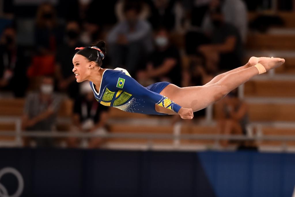 7月29日,巴西選手麗貝卡在自由體操比賽中。最終,她獲得亞軍。新華社記者 程敏 攝