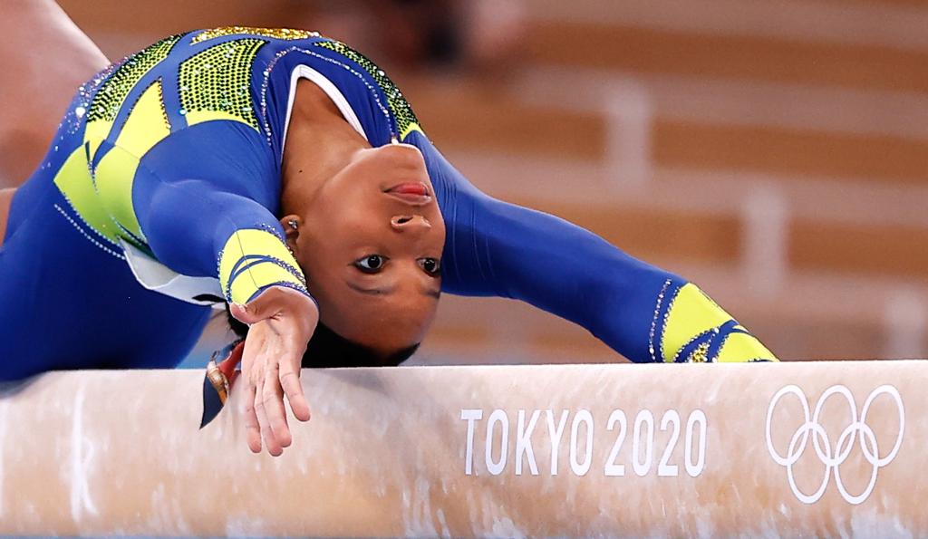 7月29日,巴西選手麗貝卡在東京奧運會體操女子個人全能決賽中獲得亞軍。新華社記者 王麗莉 攝