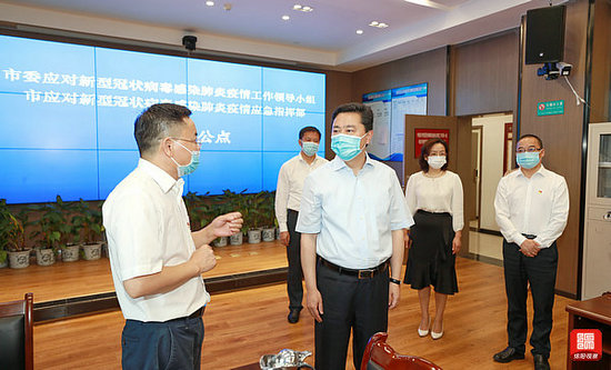 “大家辛苦了,向你們在疫情防控斗爭中的辛勤付出表示感謝。”來到市應(yīng)對新冠肺炎疫情應(yīng)急指揮部,羅增斌先后走進綜合組、疫情防控組、醫(yī)療救治組,了解疫情監(jiān)管系統(tǒng)運行情況,詢問疫情防控指導、疫情趨勢分析、醫(yī)療資源統(tǒng)籌、疫苗接種等工作,對應(yīng)急指揮部各工作組、工作專班始終保持戰(zhàn)時狀態(tài)、全力投入疫情防控表示肯定。他指出,7月23日我市發(fā)現(xiàn)一例省外輸入新冠肺炎病例后,各方力量迅速集結(jié),爭分奪秒做好流調(diào)溯源、人員排查、核酸檢測、隔離管理和患者救治等工作,在較短時間內(nèi)形成了穩(wěn)控有力的局面,推動疫情防控取得階段性成效。“疫情防控事關(guān)全市發(fā)展大局、事關(guān)群眾安居樂業(yè),容不得半點松懈和絲毫疏忽!”他強調(diào),市應(yīng)急指揮部要加強統(tǒng)籌協(xié)調(diào)、工作調(diào)度,各工作組、工作專班要密切配合、協(xié)調(diào)聯(lián)動,確保疫情防控應(yīng)急指揮體系上下貫通、高效運轉(zhuǎn);要全面加強網(wǎng)格化管理,充分運用信息化手段,緊盯中高風險地區(qū)來(返)綿人員,做好人員排查、區(qū)域協(xié)查等工作,確保第一時間找到找全找準并管住管好,切實把防控措施落實到工作崗位、管理末端、基層一線;要優(yōu)化完善院感防控流程,嚴格執(zhí)行發(fā)熱患者首診負責、接診收治、預檢分診等制度,強化對醫(yī)護人員、就診患者及陪護人員防護措施,堅決守住院感防控底線;要大力推進疫苗接種,做到應(yīng)接盡接、愿接盡接,加快構(gòu)筑免疫屏障。