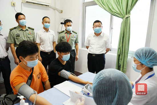 綿陽新聞網(wǎng)訊 8月12日,市委副書記、市長、市征兵工作領(lǐng)導(dǎo)小組組長元方巡查2021年下半年征兵體檢工作,看望體檢醫(yī)護人員和參檢青年。