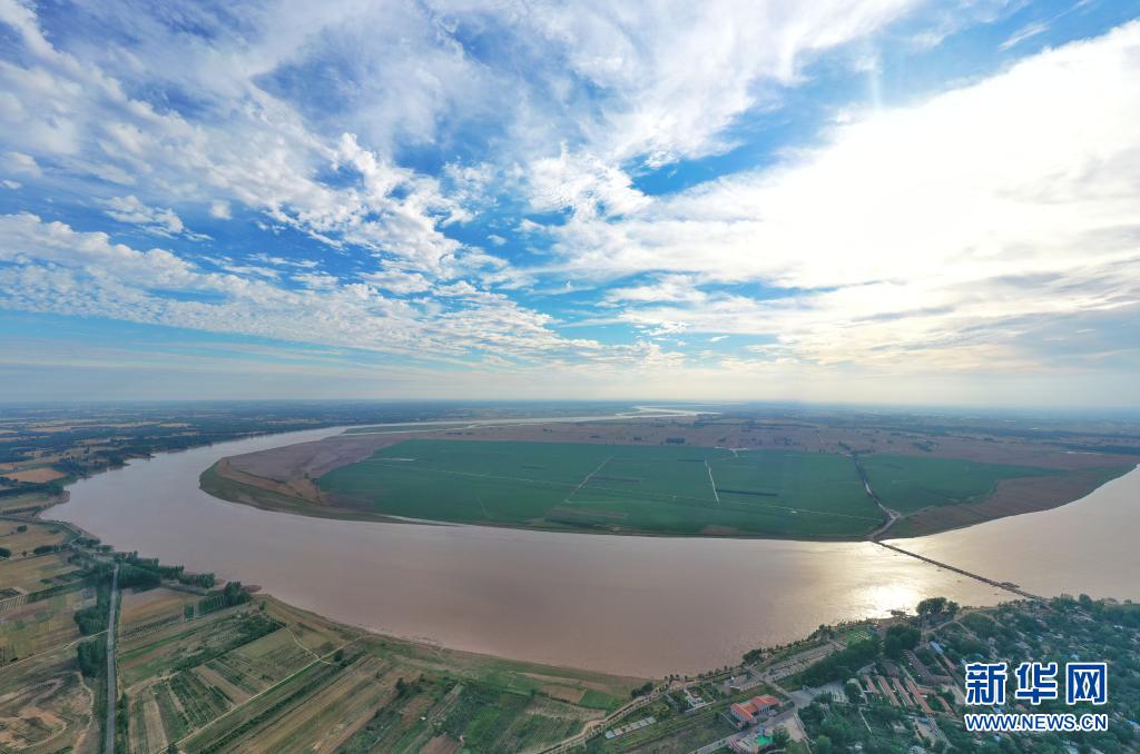 這是6月18日在河南省蘭考縣黃河灣風(fēng)景區(qū)拍攝的黃河(無(wú)人機(jī)照片)。新華社發(fā)(李金雷 攝)