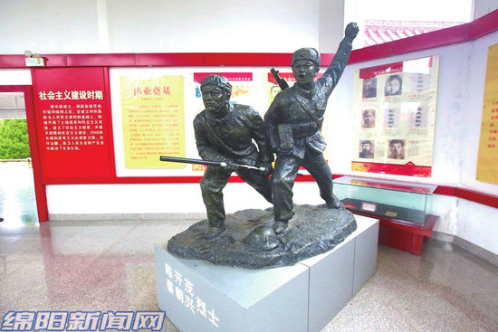 綿陽市烈士紀(jì)念館內(nèi)的陳開茂、蔡朝興烈士塑像