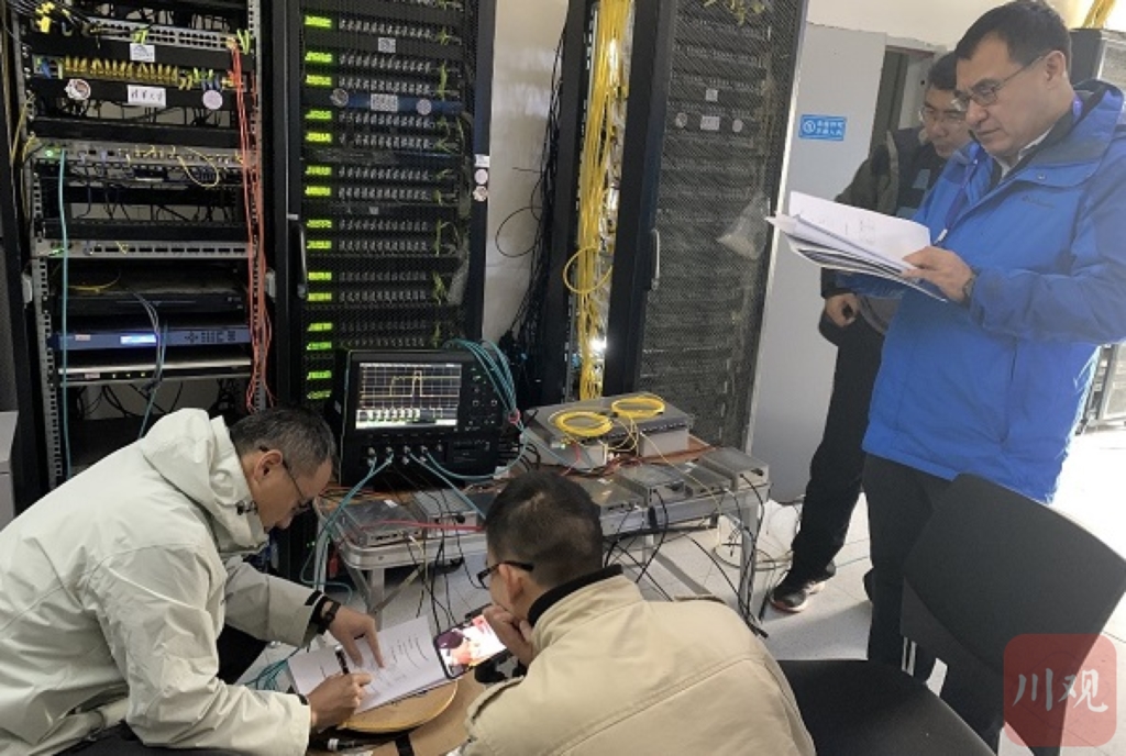 專家在稻城高海拔宇宙線觀測(cè)站對(duì)時(shí)鐘分配系統(tǒng)進(jìn)行測(cè)試 中科院高能所供圖