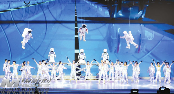于敏、朱光亞、錢學(xué)森、鄧稼先……伴隨著《祖國不會忘記你》的樂聲響起,舞臺上的青少年們放聲高歌,而他們背后的屏幕上“跳”出一個(gè)個(gè)科學(xué)家的名字,他們?yōu)樽鎳ㄔO(shè)鞠躬盡瘁的場景歷歷在目,令人動(dòng)容。隨后,三個(gè)身著宇航服的“宇航員”從天而降,漫步太空,同時(shí)三個(gè)機(jī)器人隨著音樂舞動(dòng)起來,“科技范兒”十足。