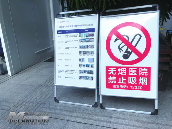 中心醫(yī)院門診大樓前醒目的禁煙標(biāo)識牌