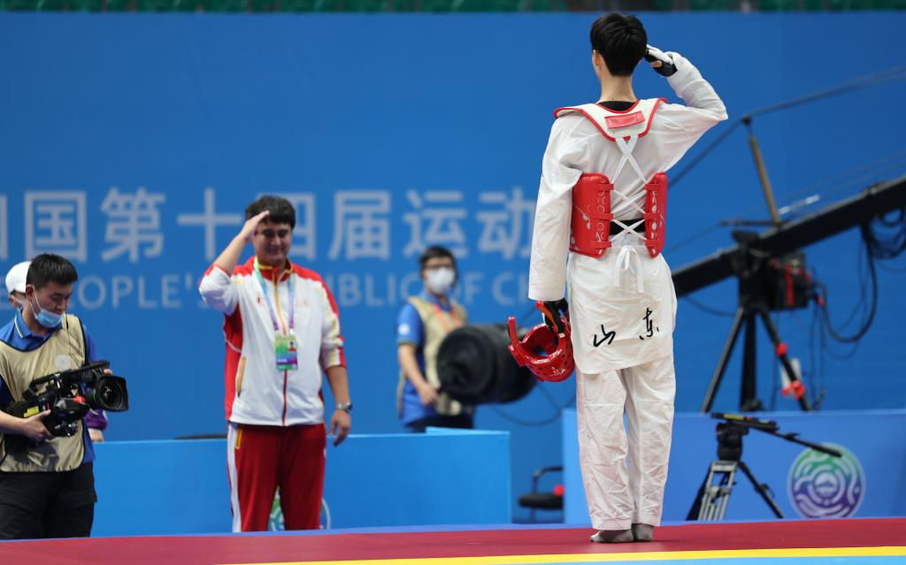 當日,在陜西漢中舉行的第十四屆全運會跆拳道項目男子58公斤級決賽中,山東隊選手梁育帥以總比分17比10戰(zhàn)勝江蘇隊選手王余龍,獲得金牌。