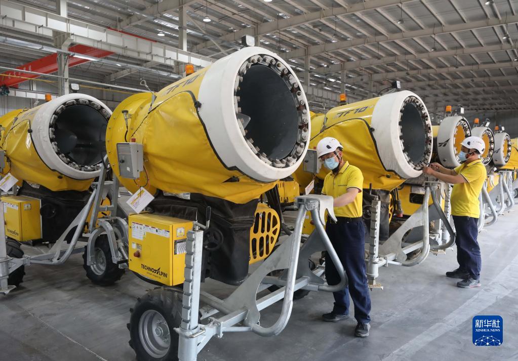這是張家口高新區(qū)冰雪運動裝備產(chǎn)業(yè)園內(nèi)一家冰雪設(shè)備企業(yè)的工人在車間查驗造雪機質(zhì)量(2021年6月23日攝)。新華社記者 楊世堯 攝