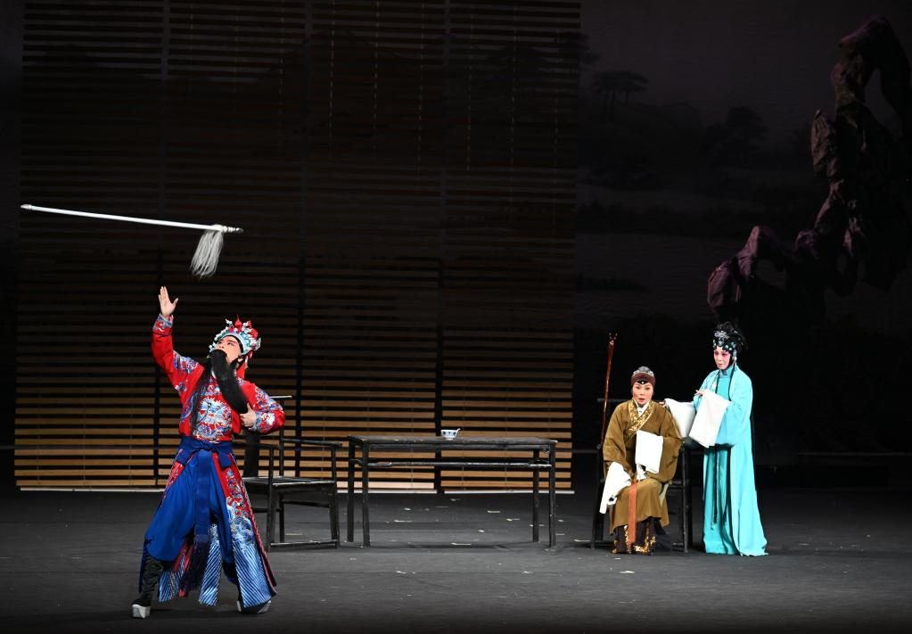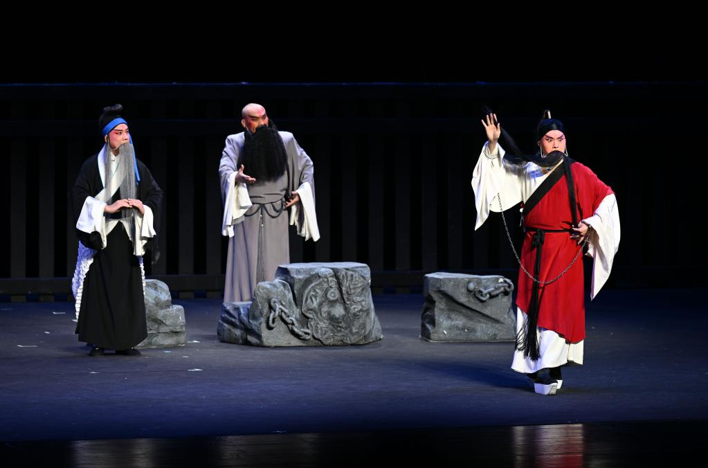 1月19日,青年顧炎武飾演者楊陽(yáng)(右下)在演出中。當(dāng)日,作為“相約北京·遇見江南”蘇州文化藝術(shù)展示周精品展演劇目之一,原創(chuàng)昆劇《顧炎武》在北京天橋劇場(chǎng)上演。該劇由江蘇省演藝集團(tuán)和昆山當(dāng)代昆劇院聯(lián)合出品,展現(xiàn)了明末清初大儒顧炎武“天下興亡 匹夫有責(zé)”的家國(guó)情懷。新華社記者 金良快 攝