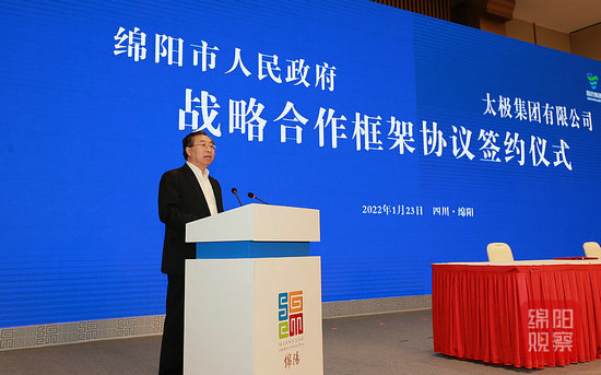 綿陽新聞網(wǎng)訊 1月23日,市政府與太極集團(tuán)有限公司簽署戰(zhàn)略合作框架協(xié)議。副省長、市委書記曹立軍,中國醫(yī)藥集團(tuán)有限公司黨委書記、董事長劉敬楨致辭并共同見證簽約。市委副書記李云主持。