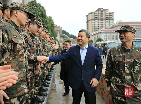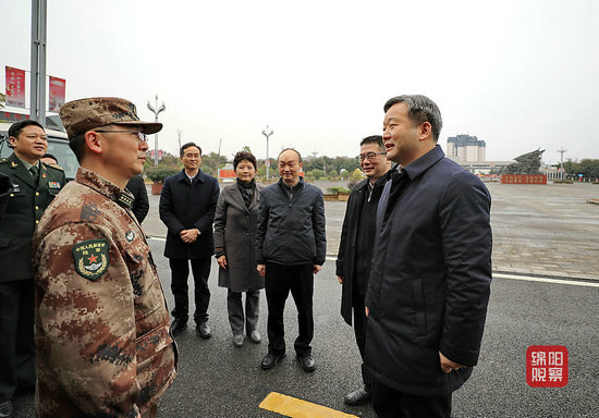 曹立軍一行先后來(lái)到77123部隊(duì)、武警綿陽(yáng)支隊(duì)、武警第二機(jī)動(dòng)總隊(duì)某支隊(duì)、綿陽(yáng)軍分區(qū)等地,詳細(xì)了解駐綿部隊(duì)歷史沿革和官兵訓(xùn)練、學(xué)習(xí)、生活等情況,聽(tīng)取部隊(duì)建設(shè)情況介紹和深化雙擁共建的意見(jiàn)建議,并向他們送上新春美好祝福。曹立軍說(shuō),去年以來(lái),面對(duì)復(fù)雜嚴(yán)峻的外部環(huán)境和疫情災(zāi)情影響,軍地團(tuán)結(jié)一心,推動(dòng)綿陽(yáng)各項(xiàng)事業(yè)發(fā)展邁上新臺(tái)階,實(shí)現(xiàn)“十四五”良好開(kāi)局。這些成績(jī)的取得,離不開(kāi)駐綿部隊(duì)的大力支持。一年來(lái),駐綿部隊(duì)堅(jiān)持以習(xí)近平強(qiáng)軍思想為指導(dǎo),聚焦新時(shí)代強(qiáng)軍目標(biāo),深入推進(jìn)政治建軍、改革強(qiáng)軍、科技強(qiáng)軍、人才強(qiáng)軍、依法治軍,在完成軍事任務(wù)的同時(shí),把駐地當(dāng)故鄉(xiāng)、視人民為親人,在搶險(xiǎn)救災(zāi)、抗擊疫情、鄉(xiāng)村振興、應(yīng)急救援等工作任務(wù)中沖鋒在前、勇挑重?fù)?dān),為綿陽(yáng)經(jīng)濟(jì)社會(huì)發(fā)展作出了重要貢獻(xiàn)。
